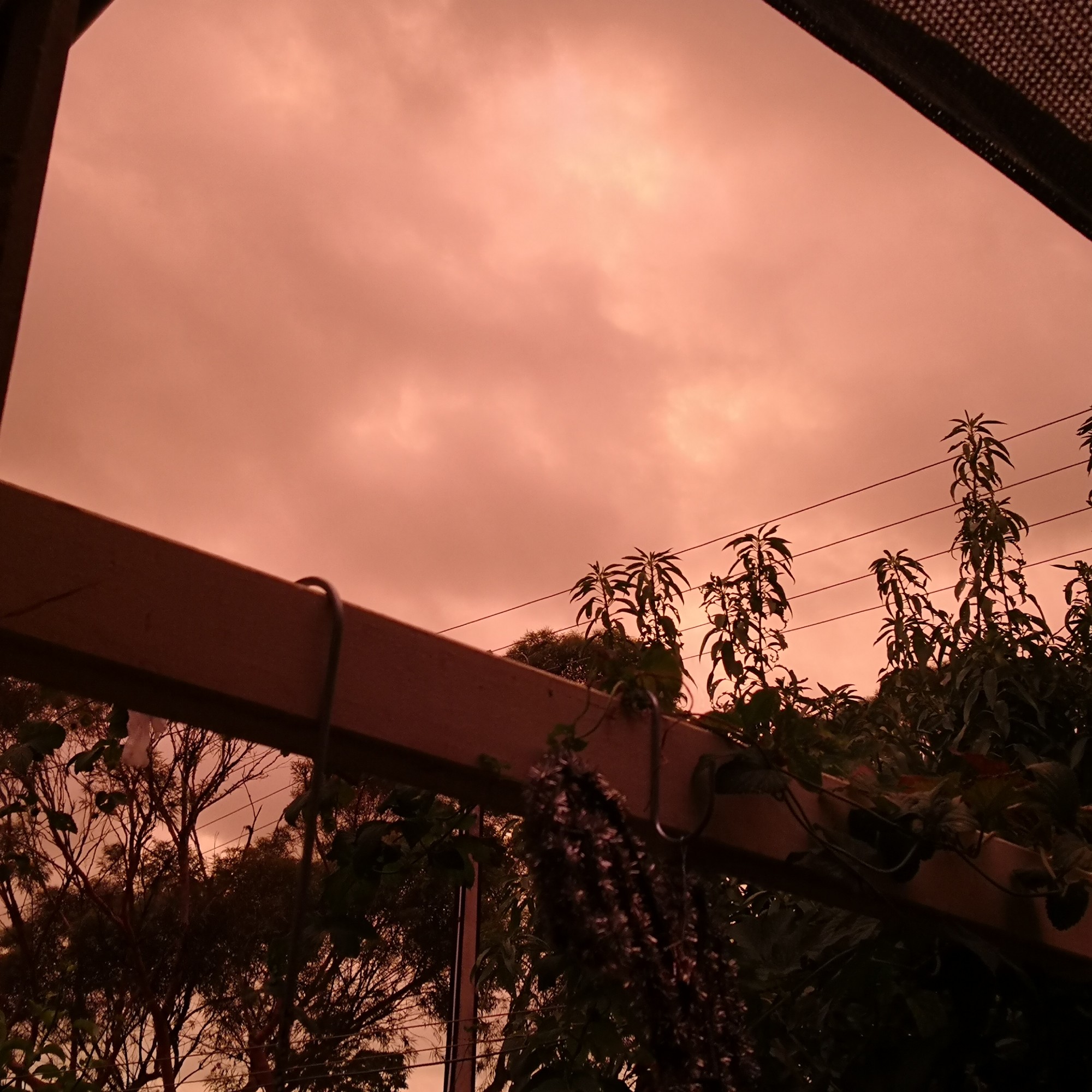 Last night the sky turned a bizarre yellow. In its own way it was beautiful, the unusual colour turning the plants in the garden into alien creatures.