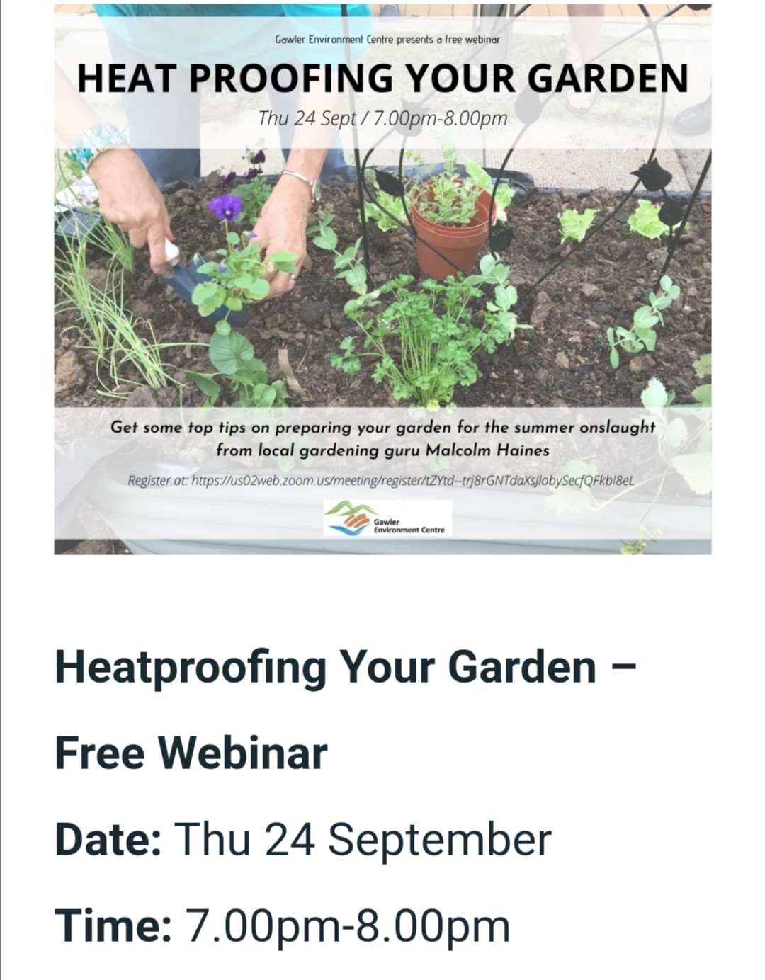 Gawler Environment Centre are hosting a free webinar this Thursday at 7 (Adelaide time).