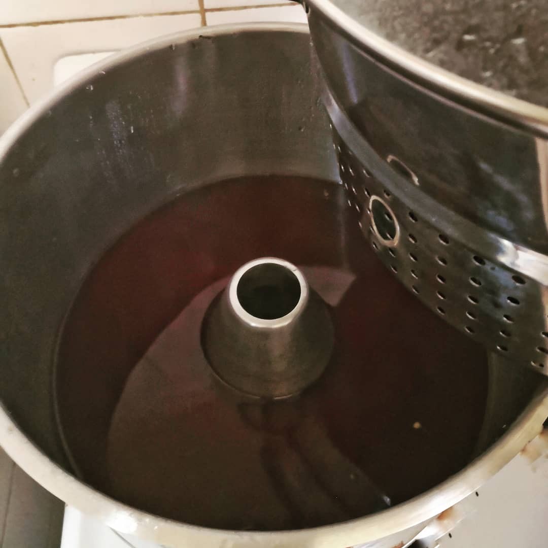The principle is simple, the steam bursts the cell walls of the fruit, allowing the juicy goodies within to flow out. These collect and drip down into the catchment area from where you tap it off into your container of choice.