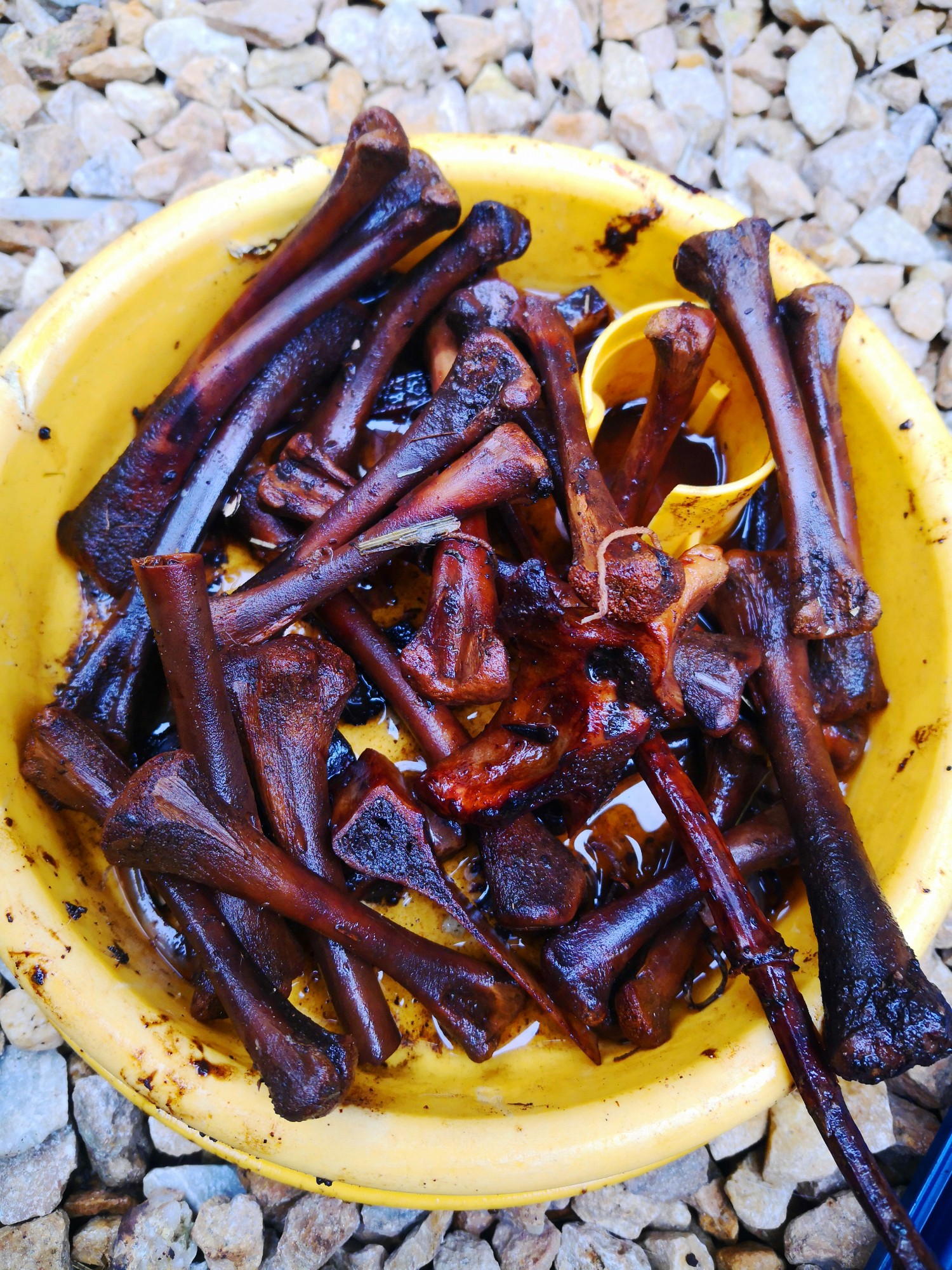 In every cleanout of the worms, I end up with a pile of unbroken down bones, especially chicken bones when I sieve the castings. Worms and microbes aren’t great at breaking these down quickly and they need something chemical to break them down. I took another idea from Palmer’s book and thought about dissolving them in homemade Apple Cider Vinegar to extract some of the extra Calcium and Phosphorous from them to make a, free, mineral supplement from them. I’ll leave it soak for a couple of months and let you know what happens. Ouch! That reminds me, I haven’t checked the fish amino acid ferment for a long time! It should be super juicy by now…