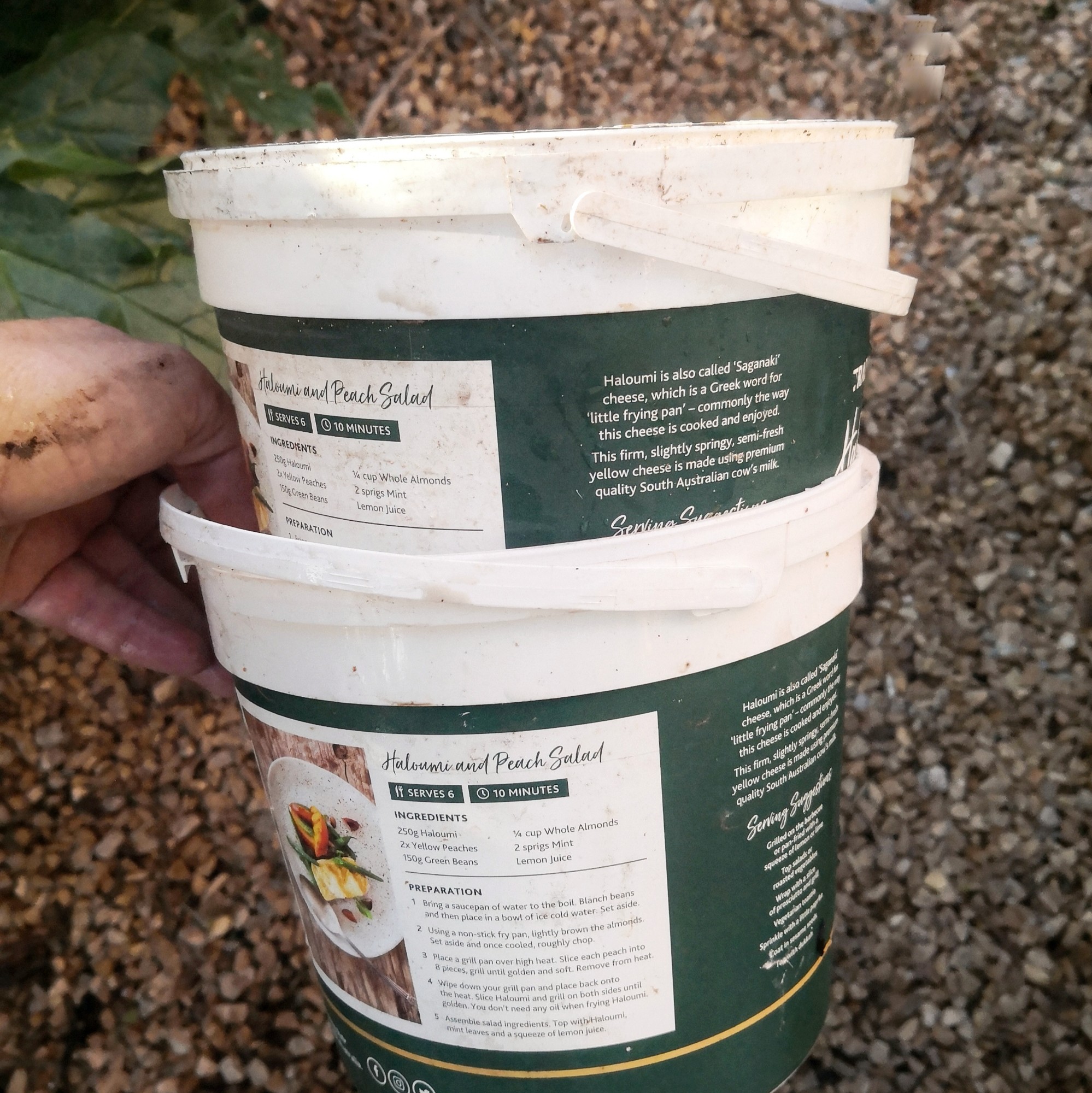 I created a little double bucket system in which the top bucket holds the grain and sits in the bottom. I simply fill until the top bucket is nearly full, put the lid on and leave it overnight. When the time comes to drain and rinse the grain, I simply remove the top bucket from the bottom and let gravity do its thing. You don’t have to do this, a bucket and a sieve will do the job but I had so many of these little hummus and yoghurt buckets around.