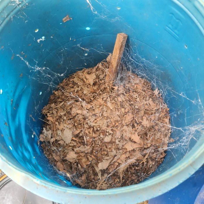 The pic above shows the drum with lots of holes in it that ‘processes’ the leaf mould. It’s really just to contain the leaves and let air and moisture and little critters get into the system.