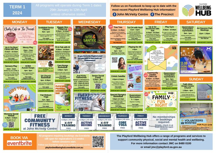 If you check out the pic of their term 1 timetable below, you’ll see that The Precinct holds all kinds of teaching spaces and workshops, so if you are in Playford or can get there, it’s well worth following their facebook page or signing up for their newsletter. Follow them on Eventbrite too to get notifications of upcoming events.