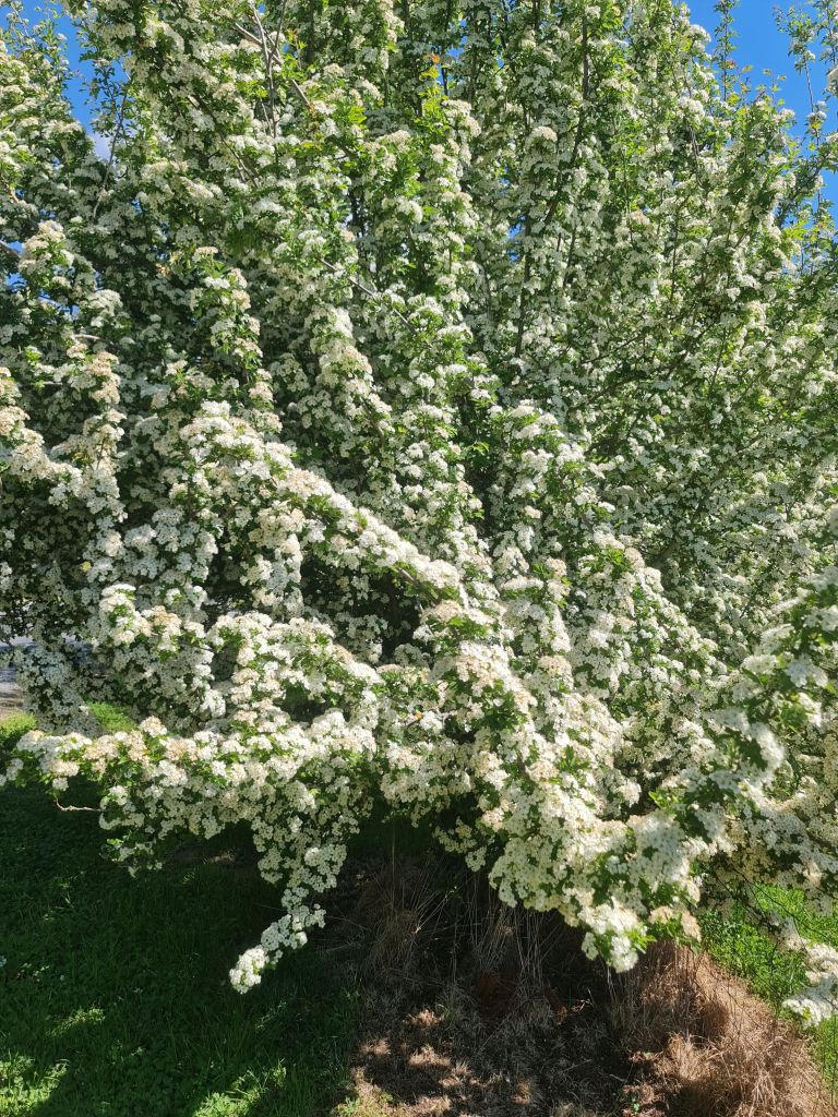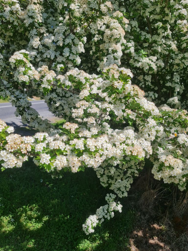 Hawthorn are in full, spectacular bloom in the Hills at the moment. Our most common species seems to be Crataegus monogyna (mono = one, gyna = seed).  I’m that’s guessing, because it has only one seed per fruit. I’ve found another species but haven’t ID it to my satisfaction yet.