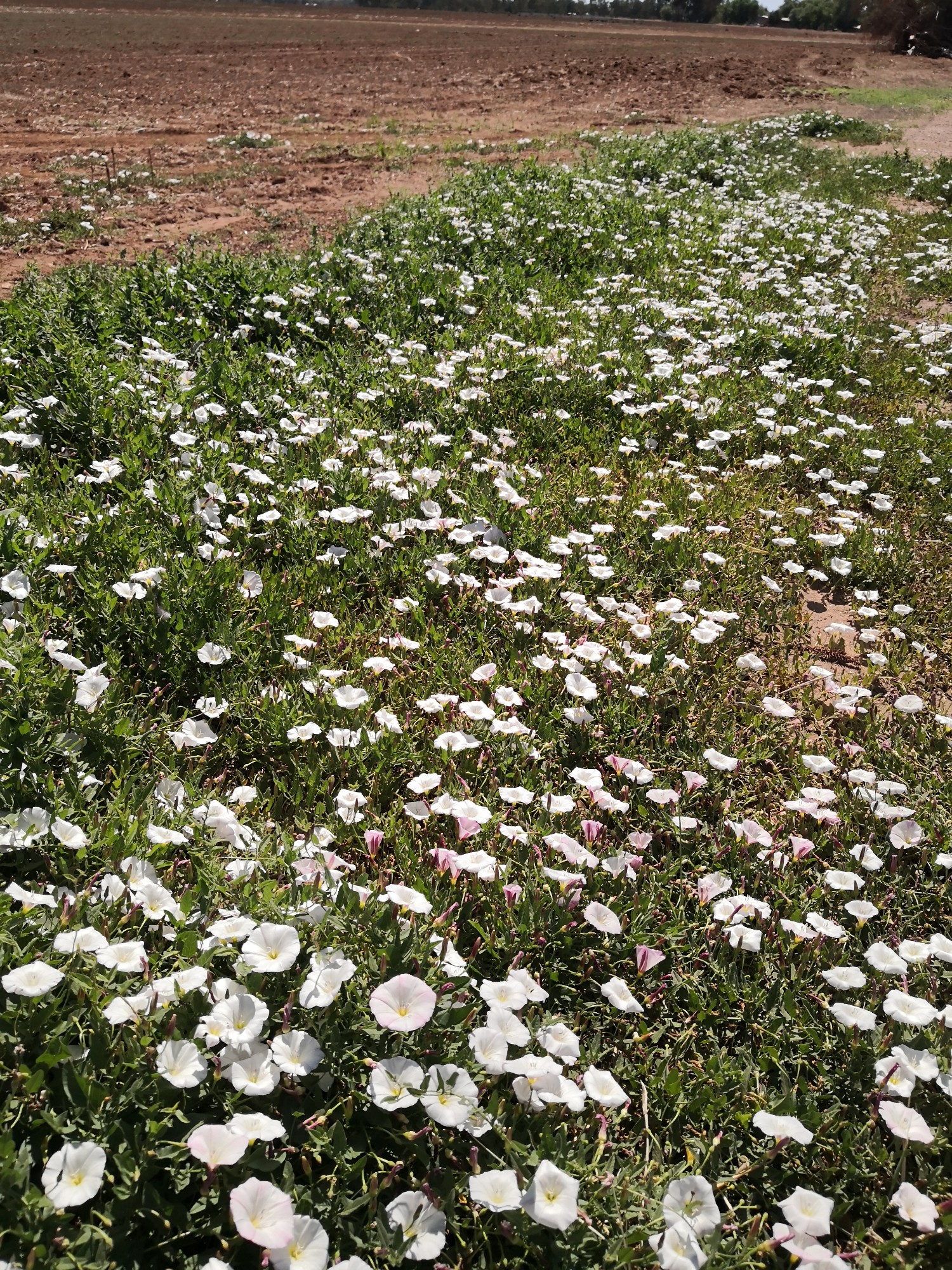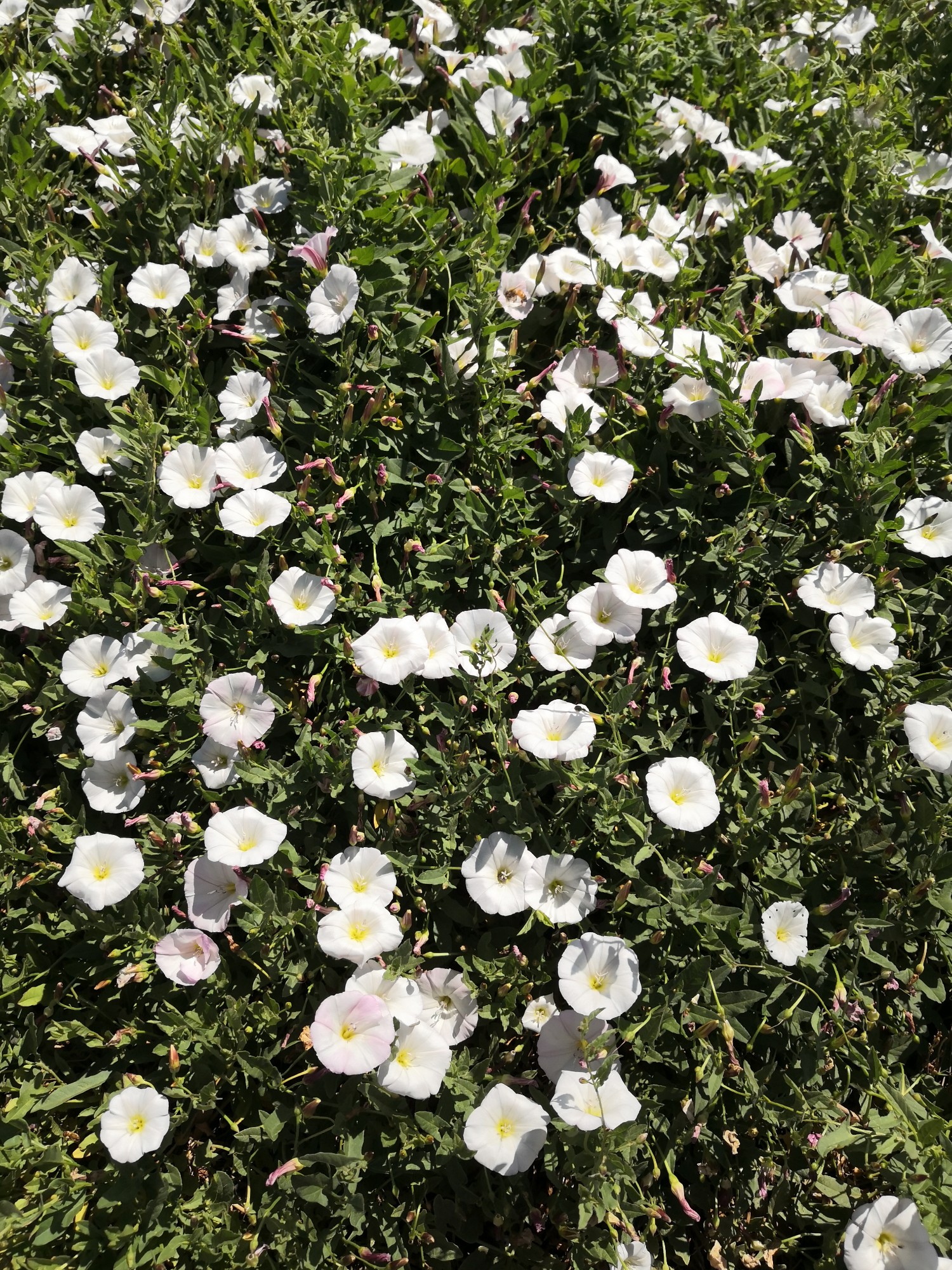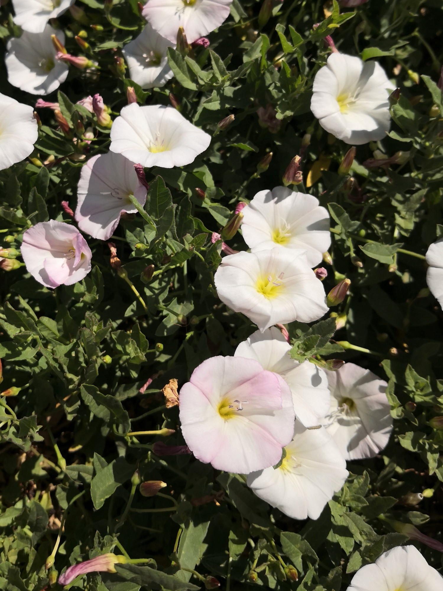 Convulvulus are a genus of perrenial, twining climbers. They can cover quite a bit of ground in Summer.