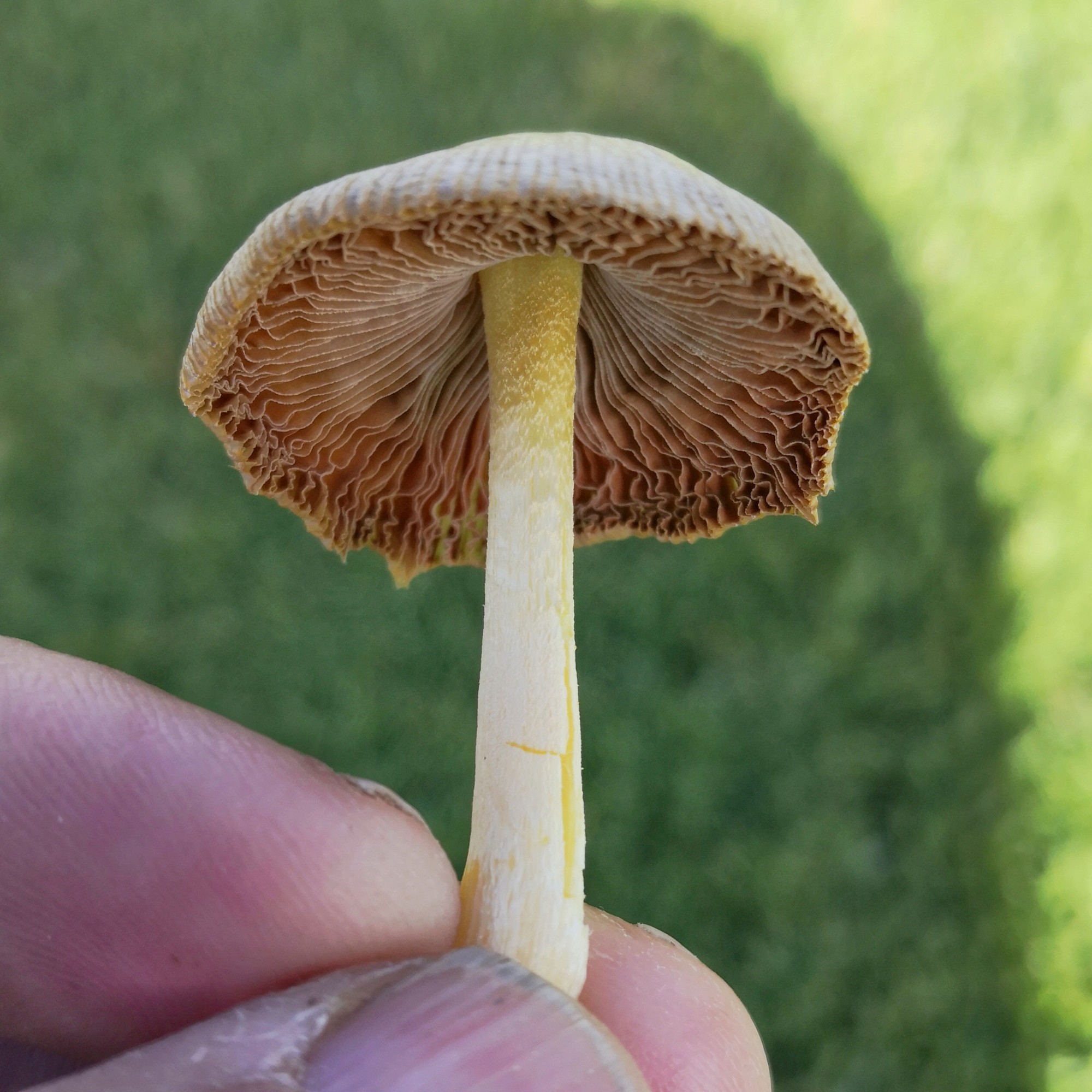 Yellow Fieldcaps grow in grass and hay and are commonly found on ovals and in parks near Gawler. They can be found all day, even in full Sun.