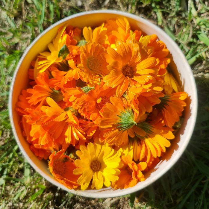 There is some disagreement as to which varieties of Calendula are the most useful. As always, the oldest, purest varieties are more medicinally potent, that means the orange varieties but use what you’ve got, they all have some good in them, particularly if you’re not just using the petals but the whole flower head.