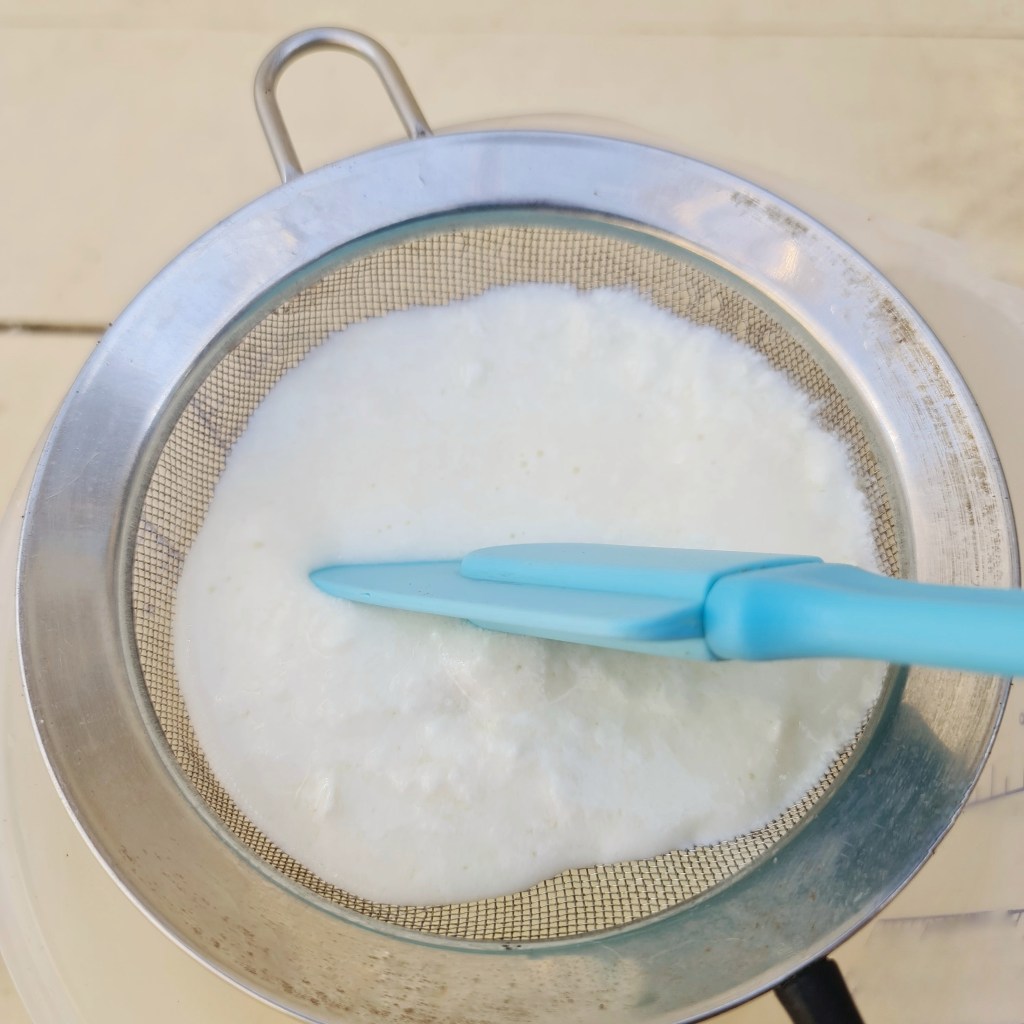 Leave your grains in the milk overnight, or if you like a stronger taste, leave for a couple of days. The milk will thicken to the consistency of buttermilk. I like the taste after I’ve left it 2 days throughout most of the year but that can vary with the temperature. If you leave it too long, the milk will separate into curds and whey. You can still use it at this stage as whey is very nutritious in its own right or you can strain out the curds and squeeze them out into a very strong soft cheese. It’s magic on the garden too, if you’re not game to eat it at this stage!