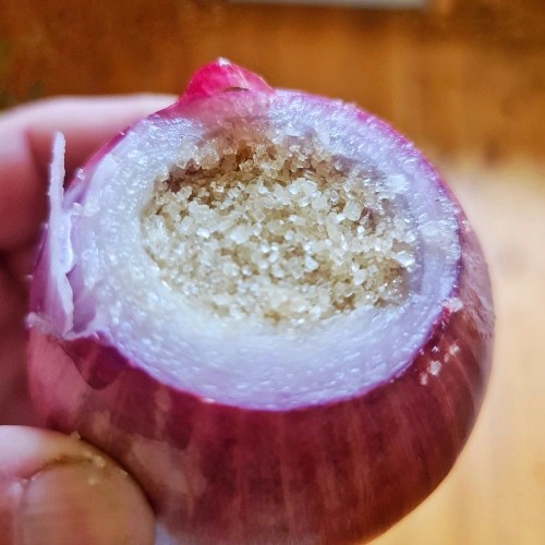 This method is far more productive and takes less time to start cranking out the syrup because manu more cut edges are available for the sugar to draw from. All you do is remove the onion skin and slice it into pieces.