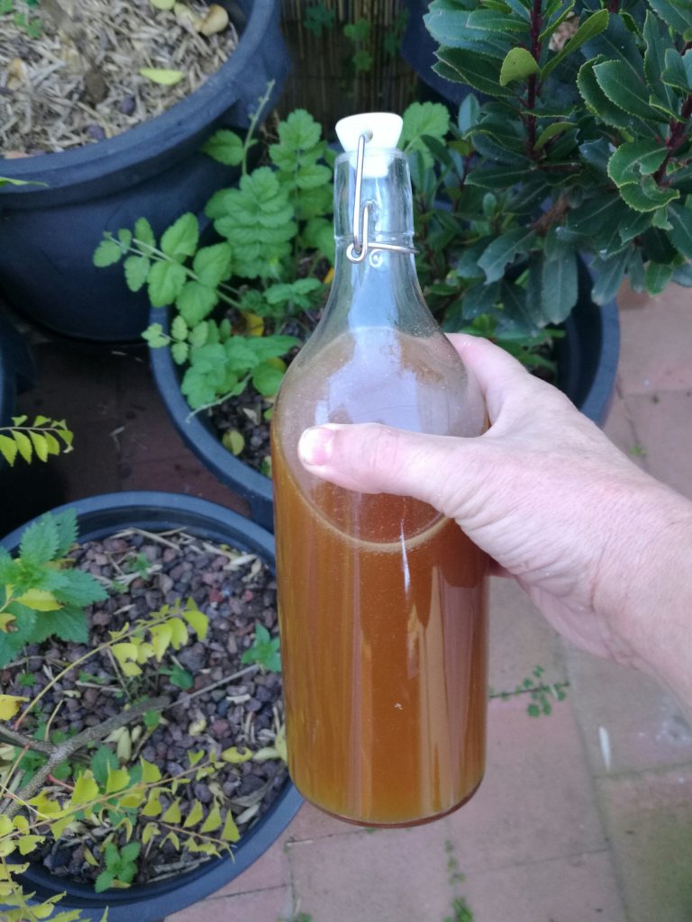 The leachate that you drain from the bottom of the bin every few days is like liquid gold. It is quite acidic and full of microbes and their waste products as well as the juices that have drained from the kitchen scraps.