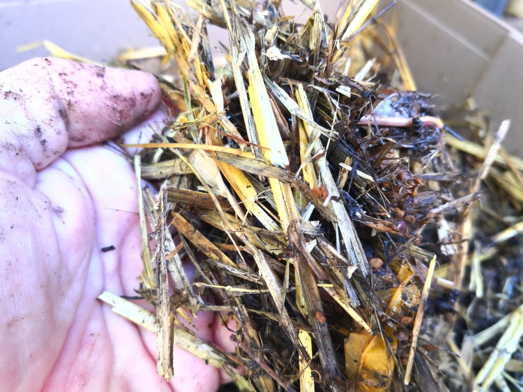A layer of straw or hay over the top layer of scraps also generates heat as it breaks down. It can also trap heat that is already in the bed. The straw breaks down over the winter due to bacterial and worm activity, so adds to your castings. Lucerne is the best to use, its high level of protein and other nutrients fatten up the worms nicely during the cold weather. If you don’t have access to straw, a layer of shredded paper works a treat. It also helps absorb excess moisture and the worms love to read the sports pages.